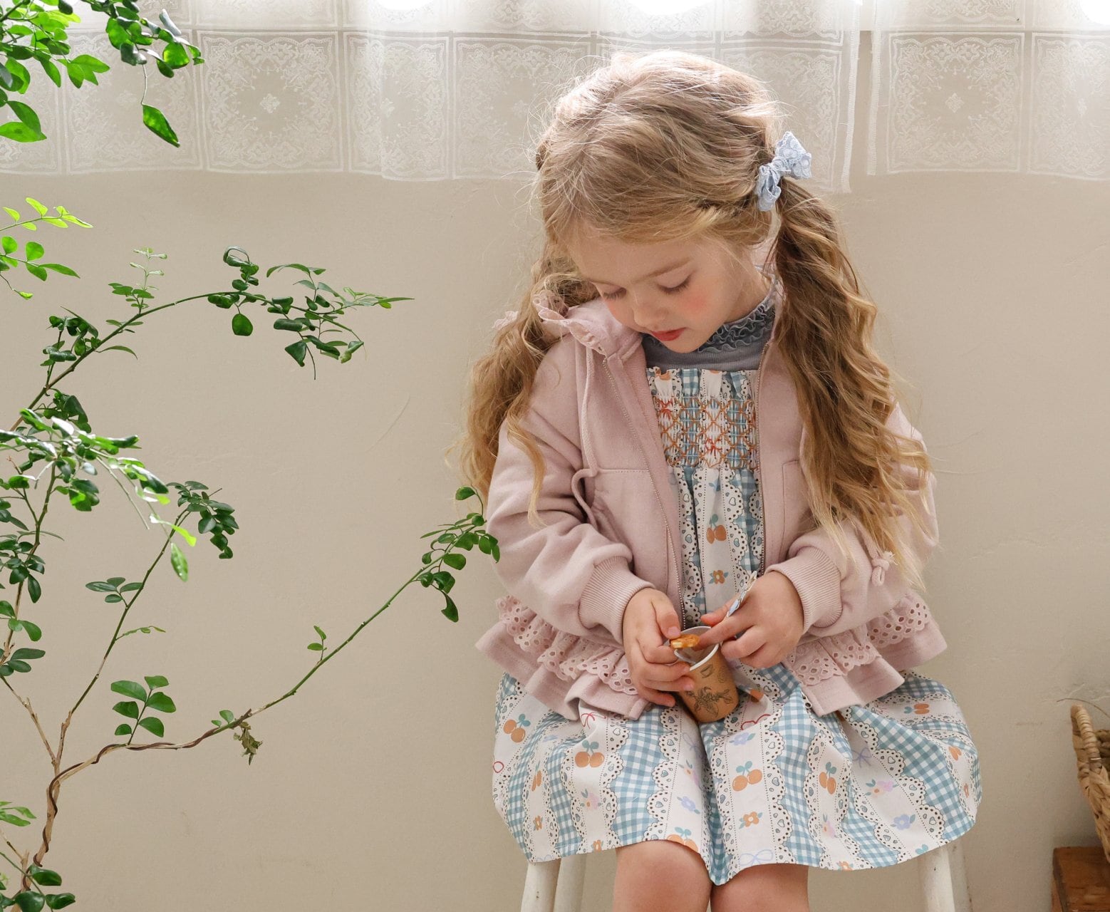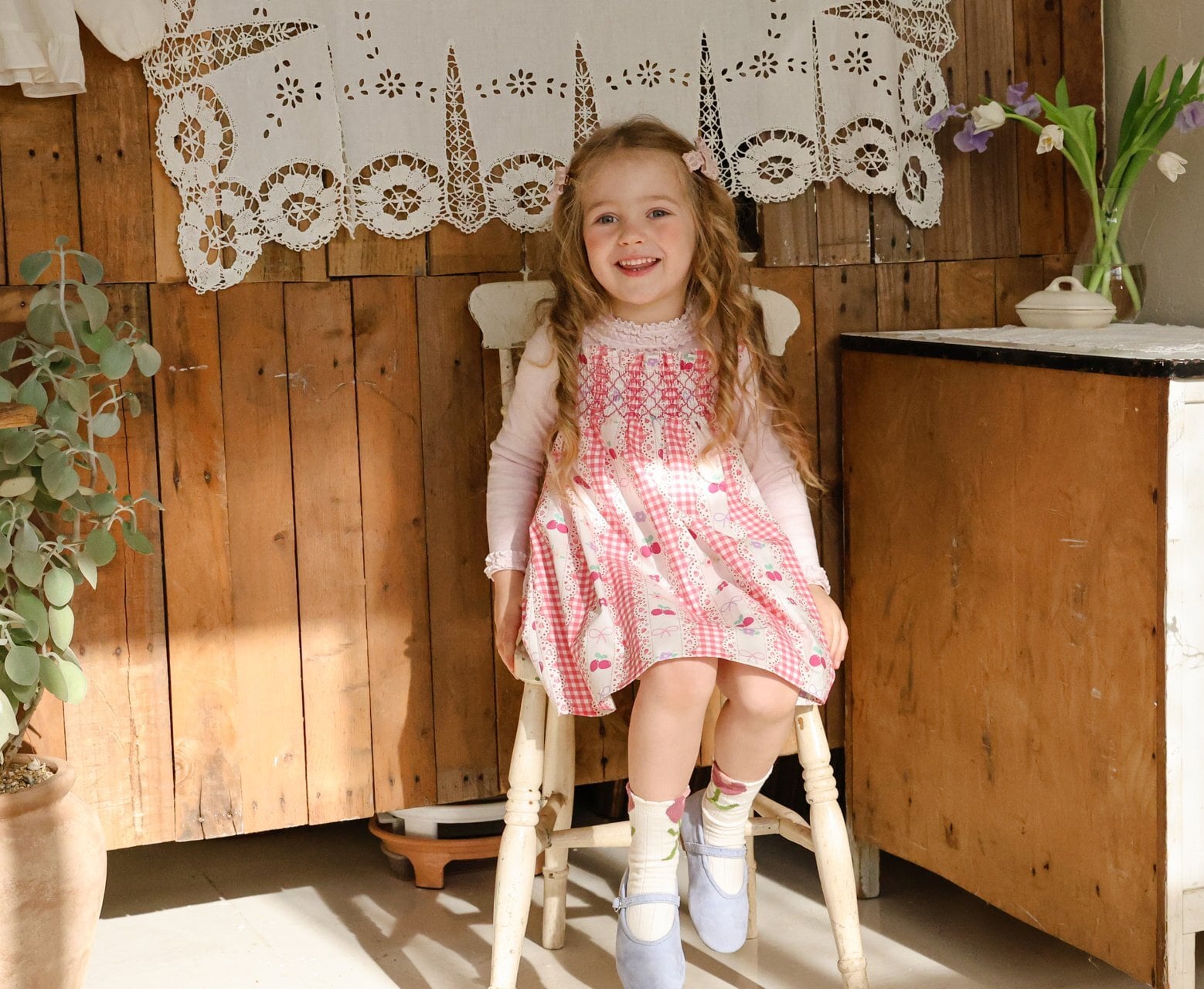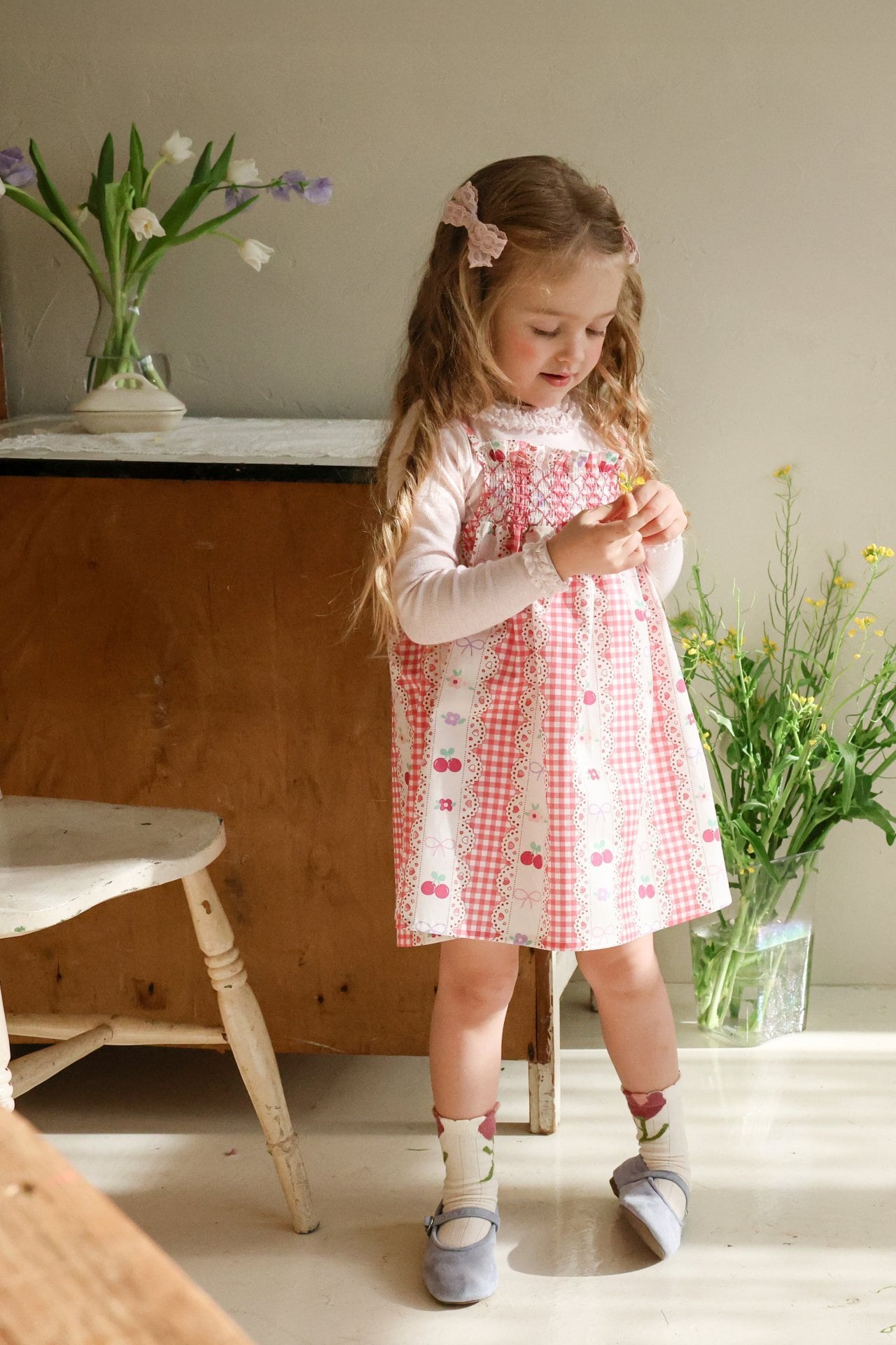 チェリーやリボン、チェック柄を組み合わせた華やかなデザインで