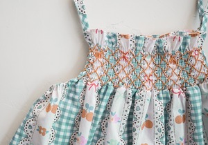 明るいカラーと可愛いパターンが魅力のノースリーブワンピース