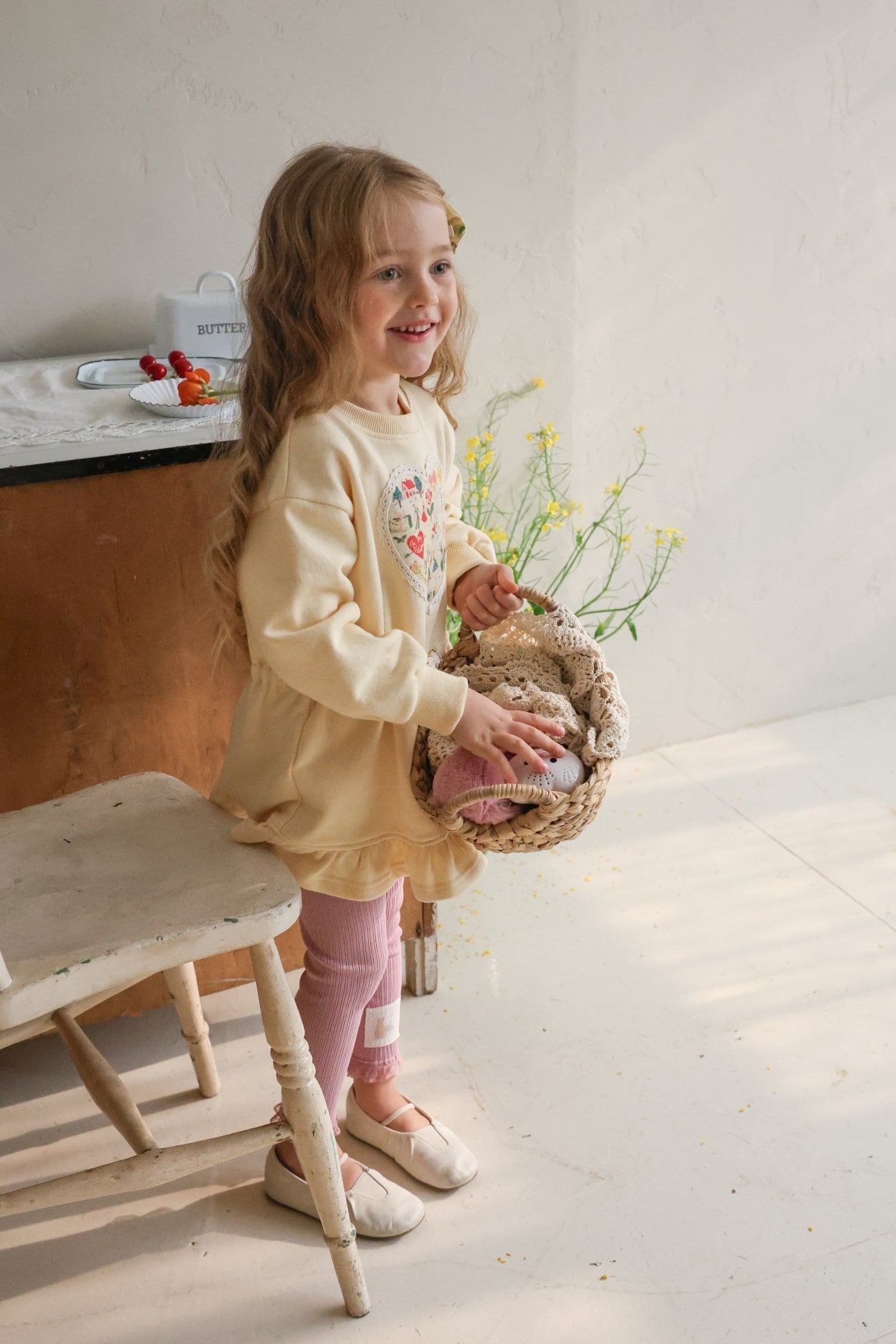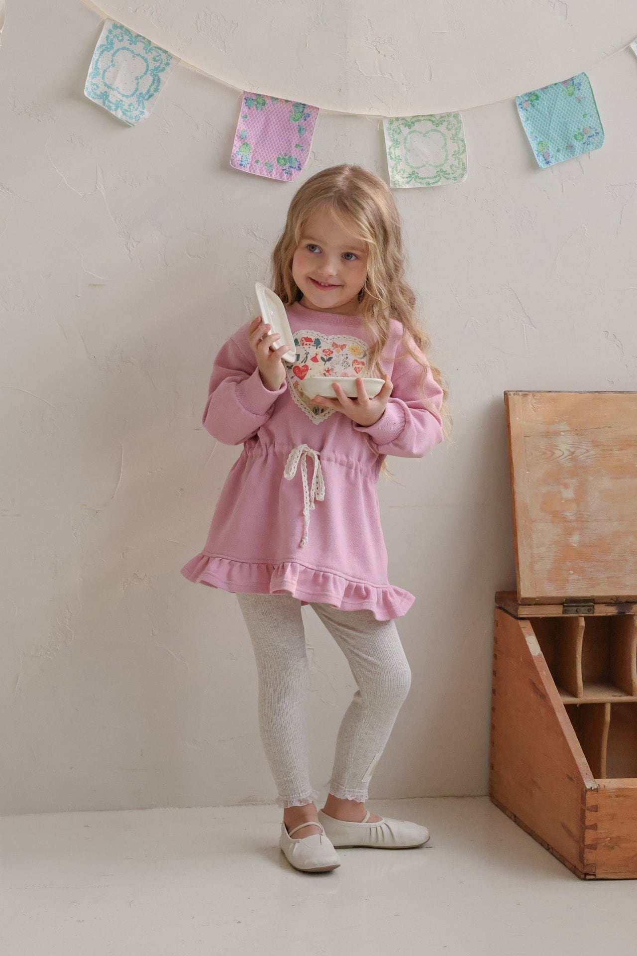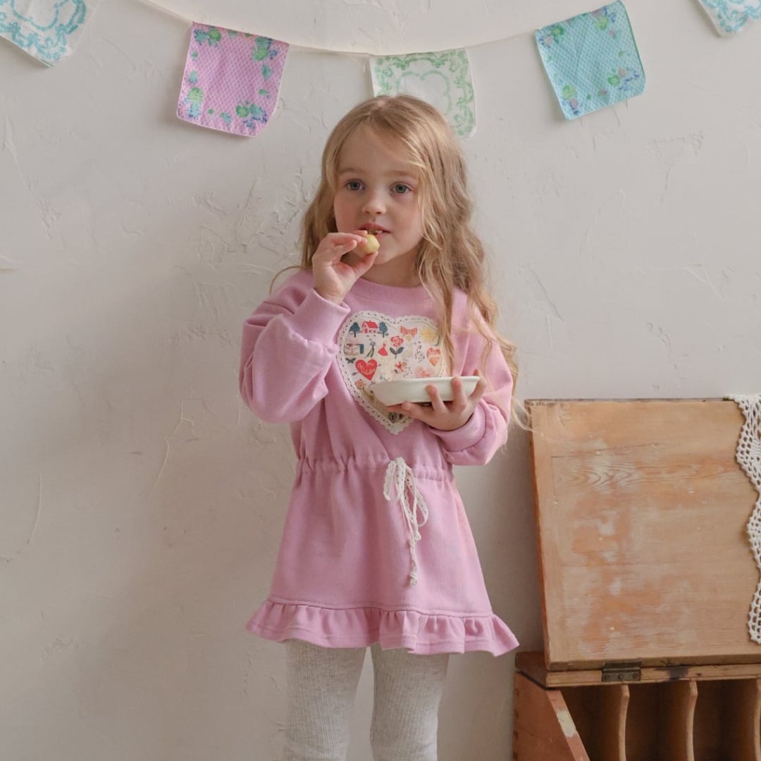 胸元のハートのパッチと裾のフリルが女の子らしいポイント