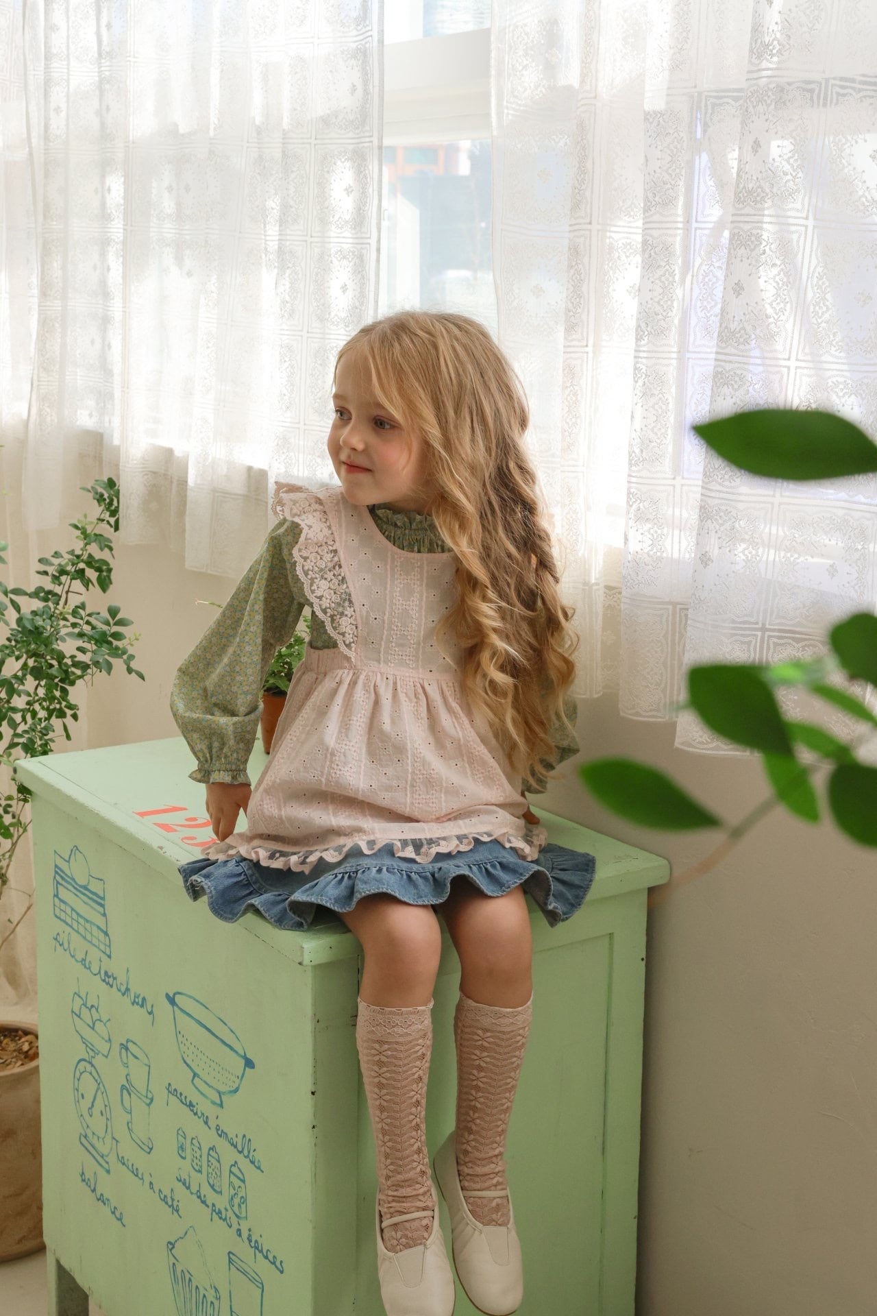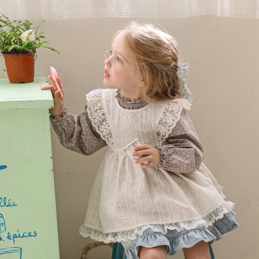 繊細なフラワー刺繍生地に重ねたレースフリルが