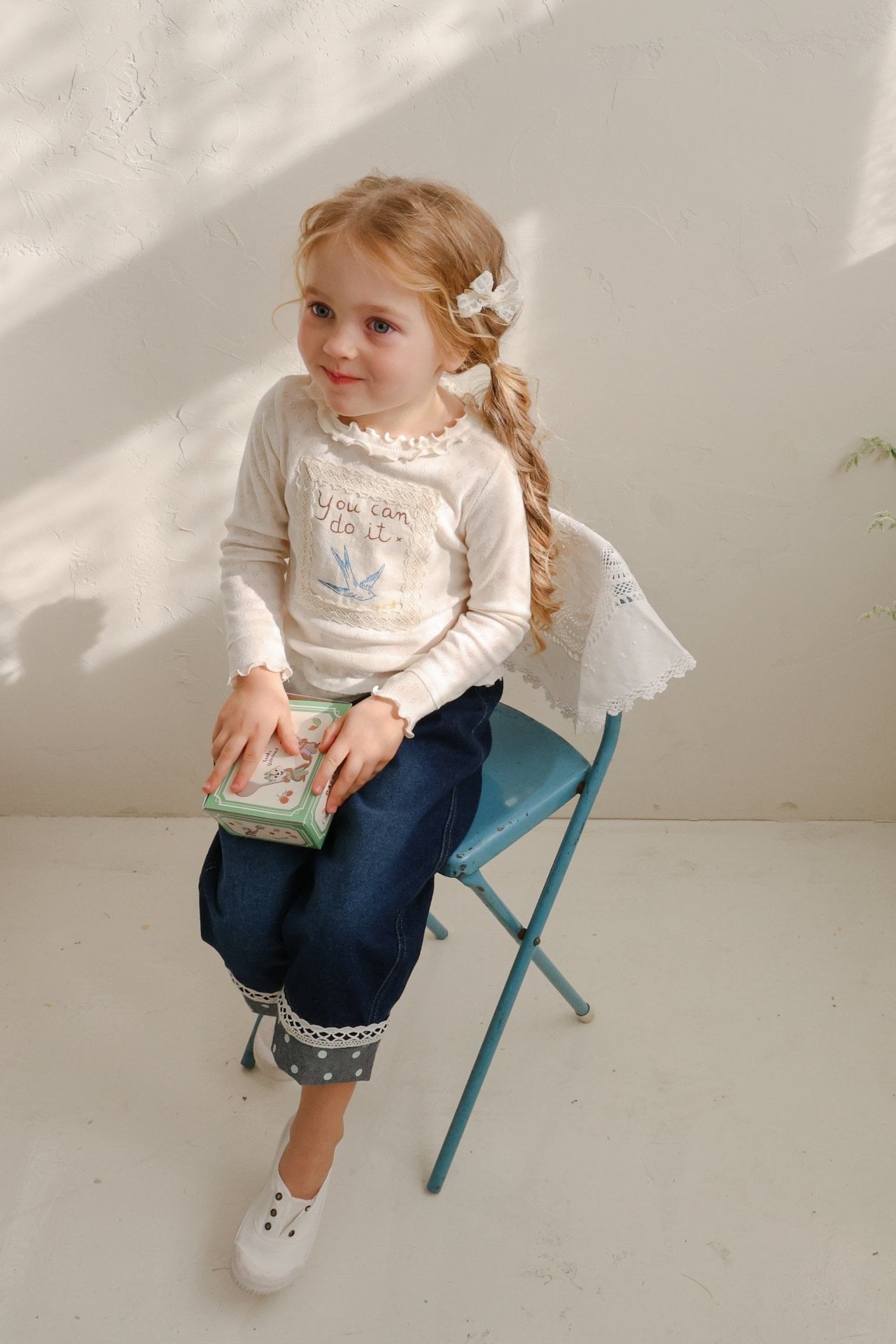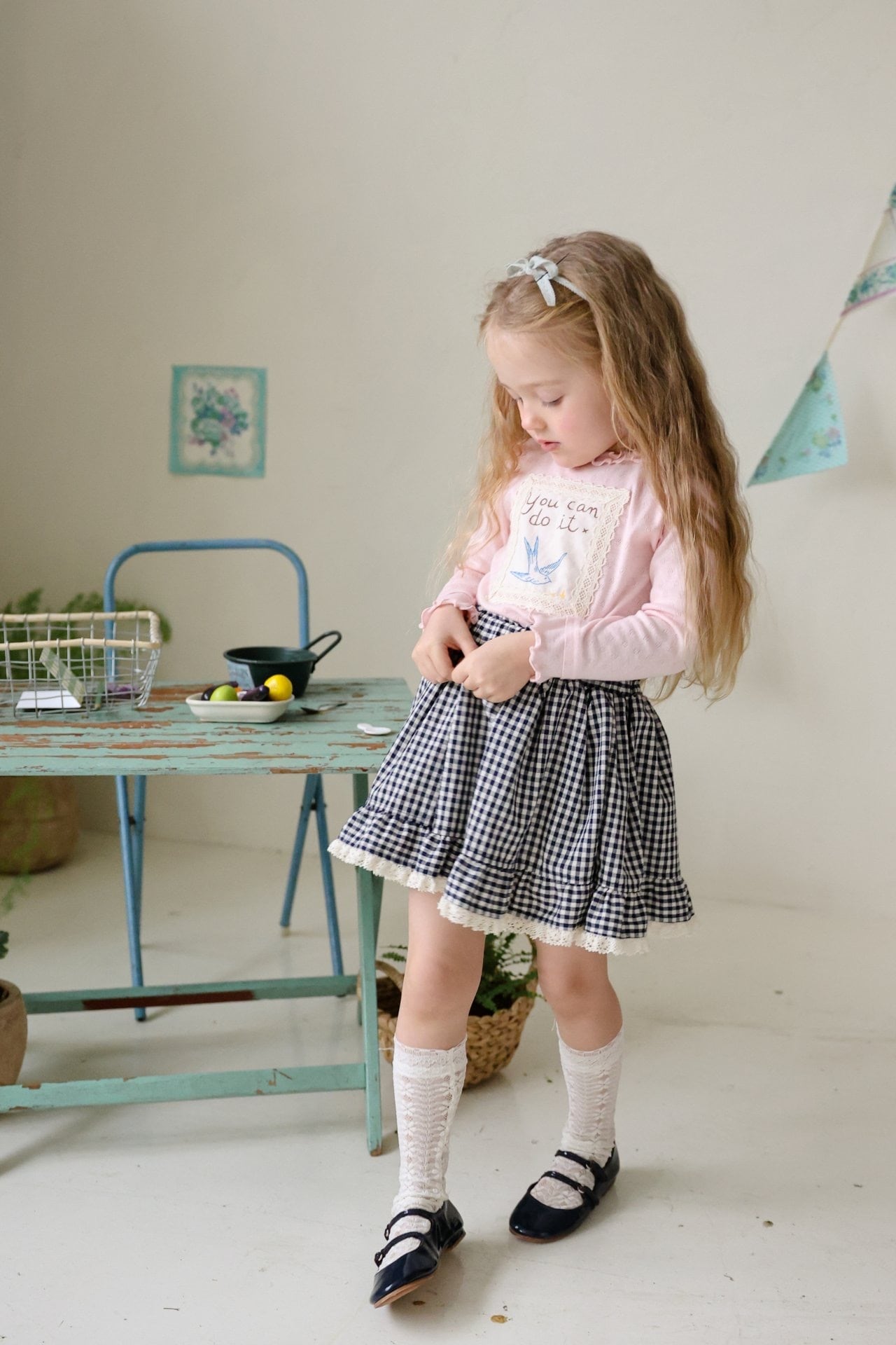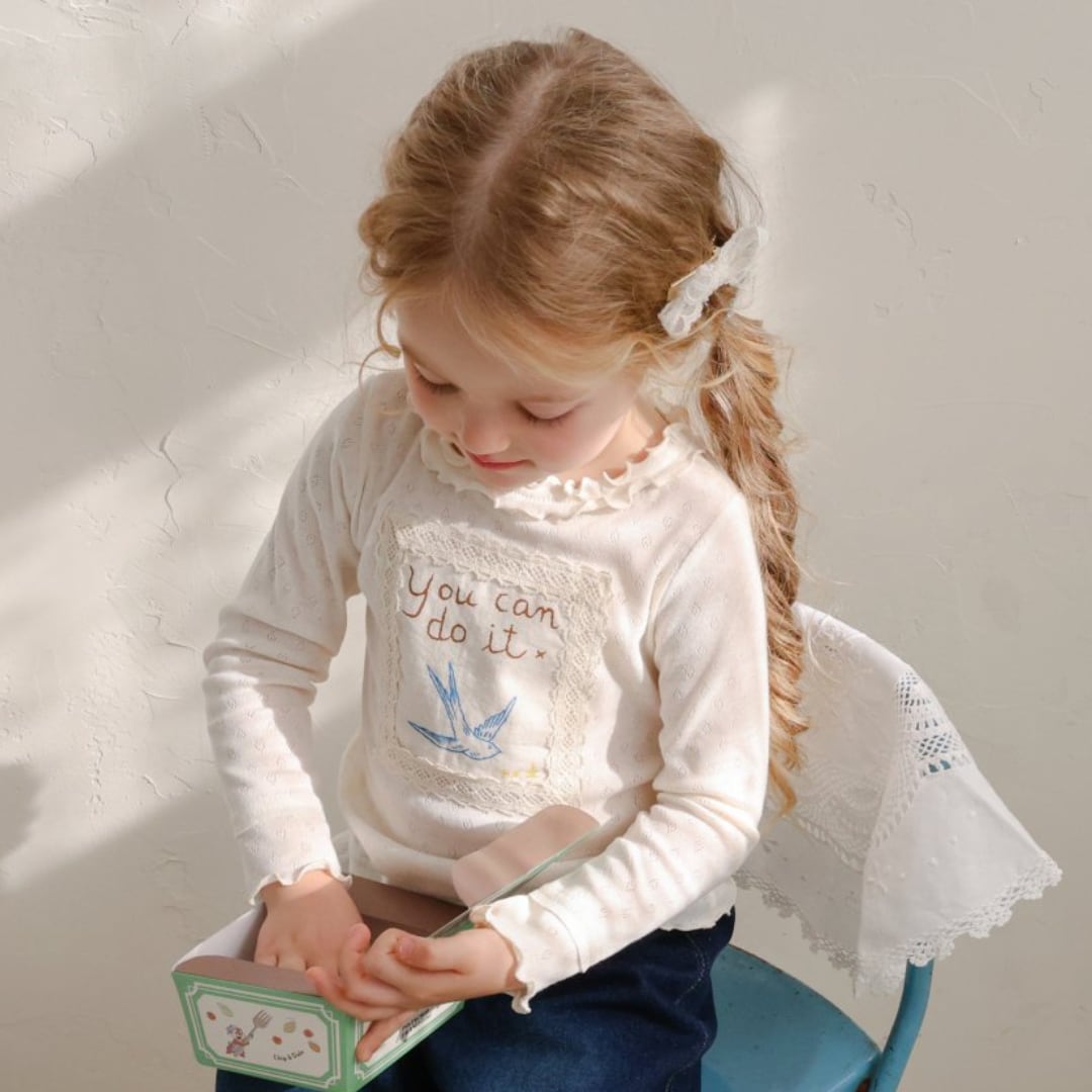 胸にはレースパッチとイラストプリント付きで可愛らしいアクセントに