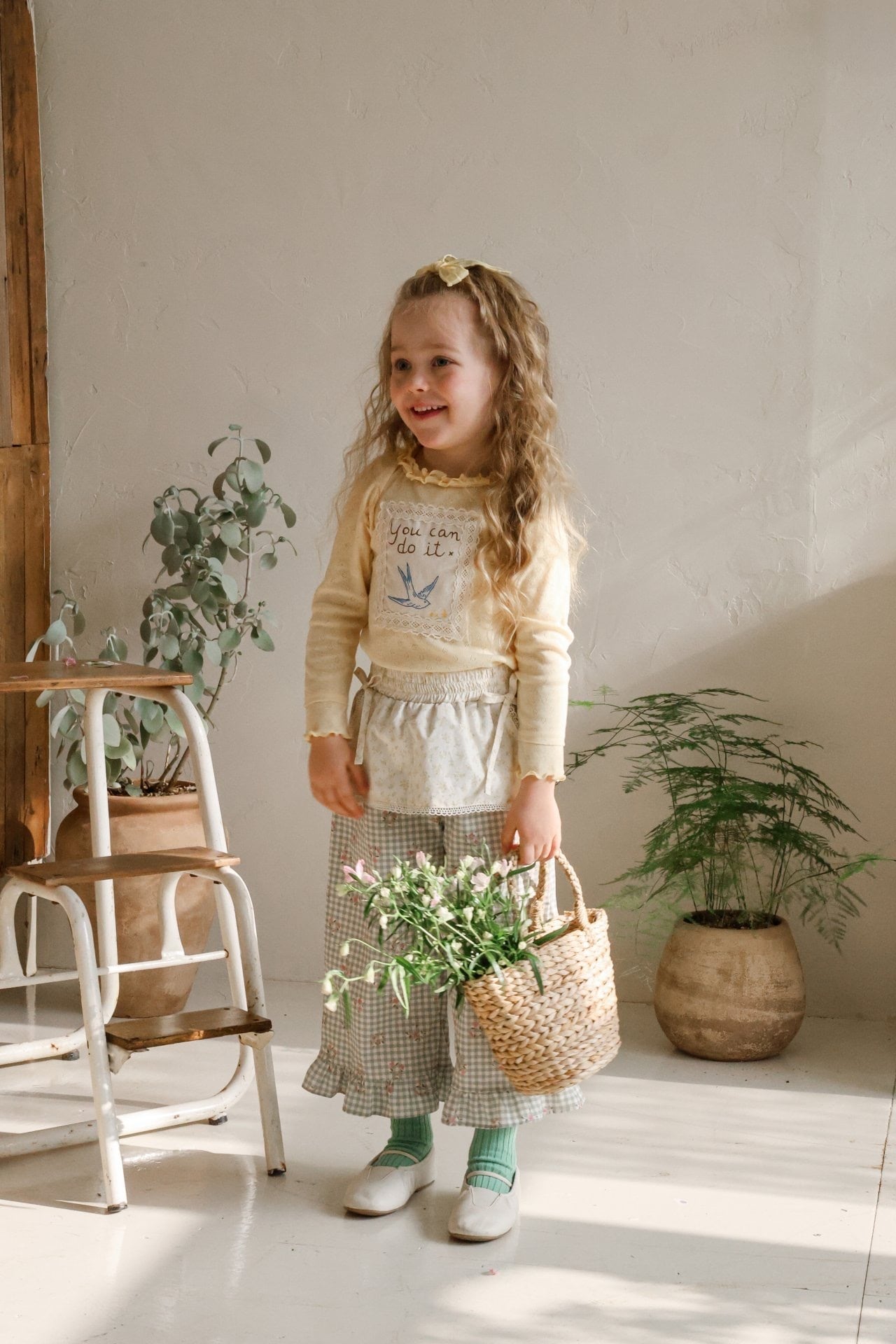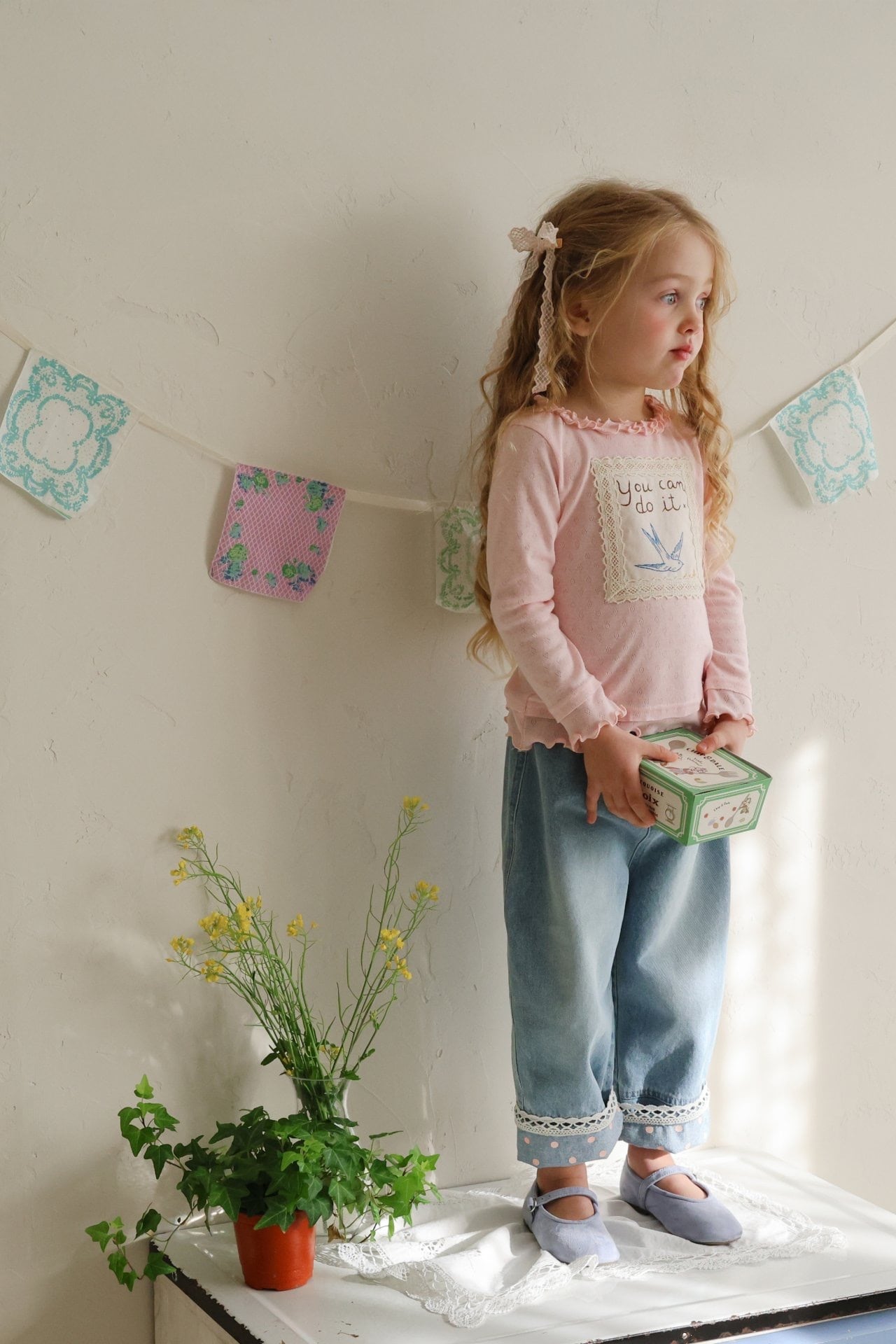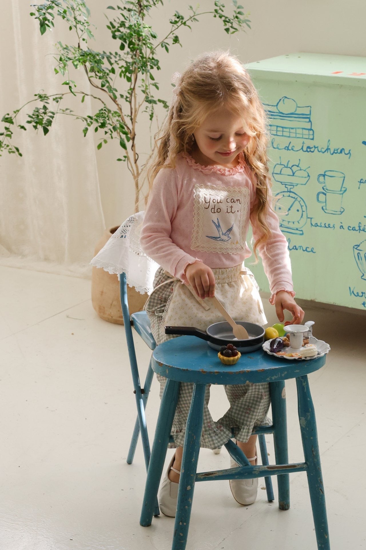 胸にはレースパッチとイラストプリント付きで可愛らしいアクセントに