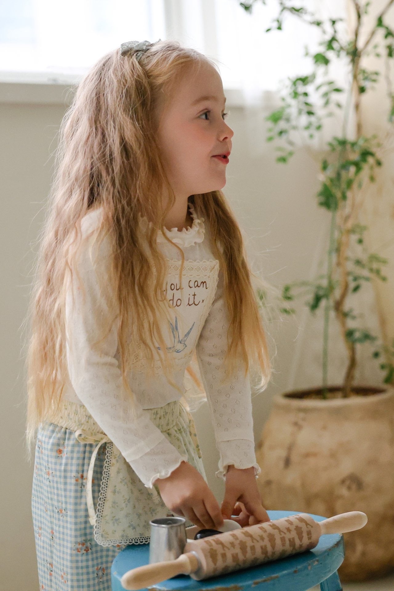 裾と袖口はウェーブ仕上げで1枚でもでもレイヤードしても春のコーデにぴったりです