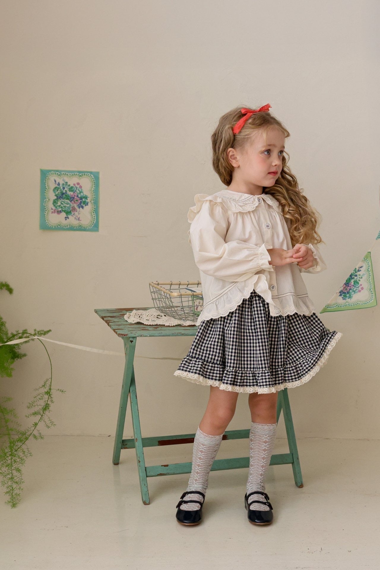 細かなチェック柄にフリルの切り替えが加わりさりげなく可愛いポイントに