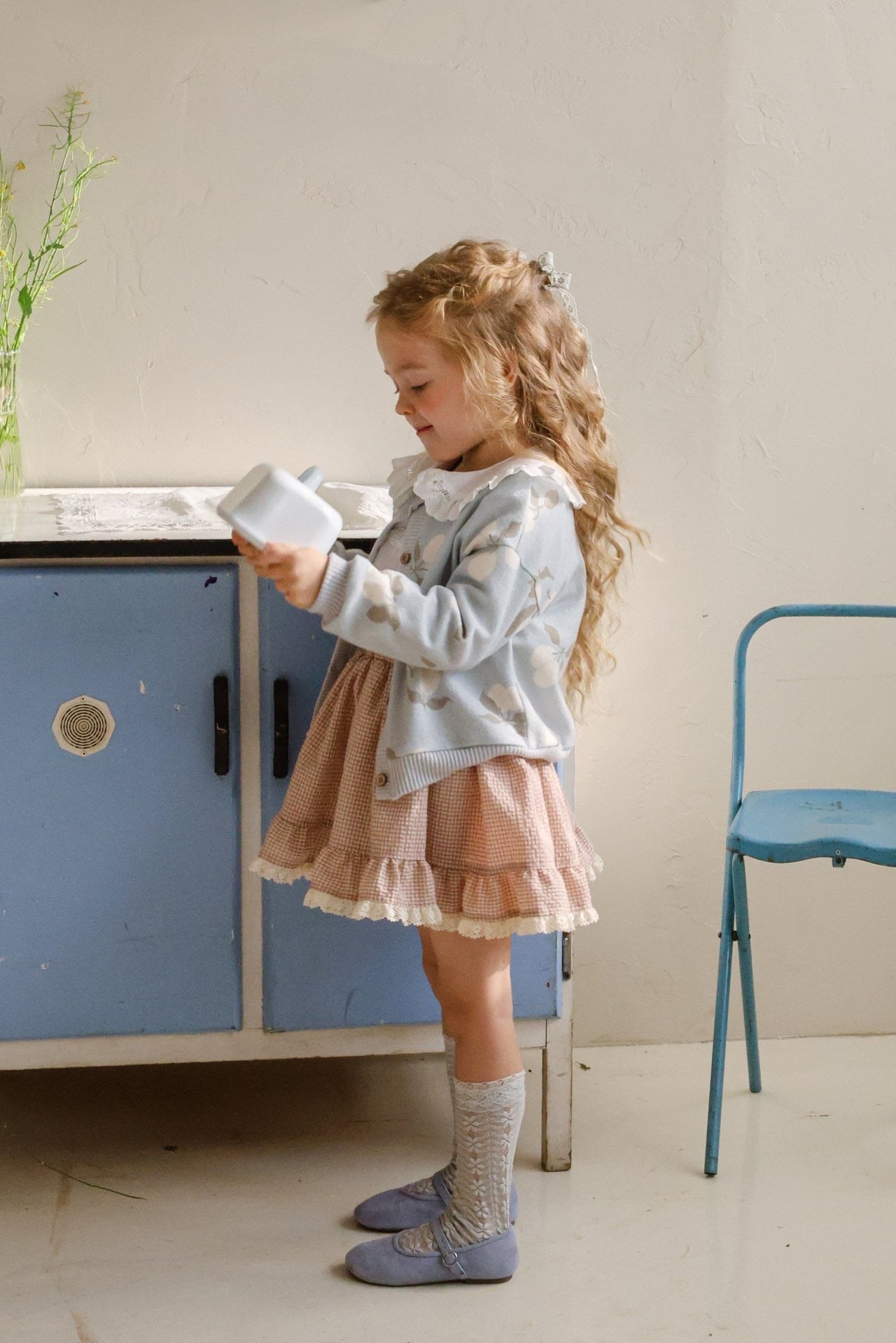 歩くたびに自然に広がるフレアラインが子どもの動きをより可愛らしく見せてくれます