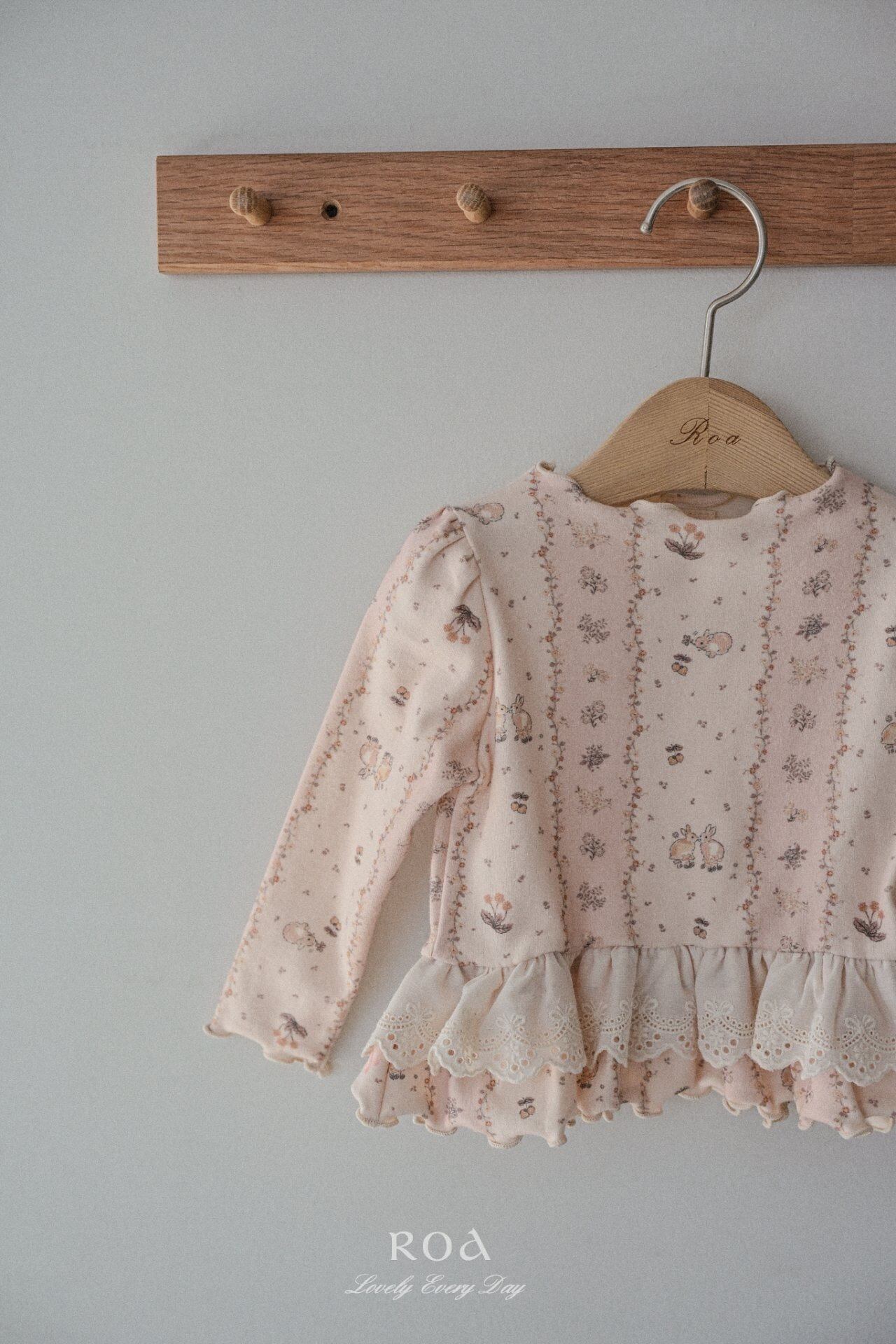 可愛いウサギと花のプリントが入ったTシャツです