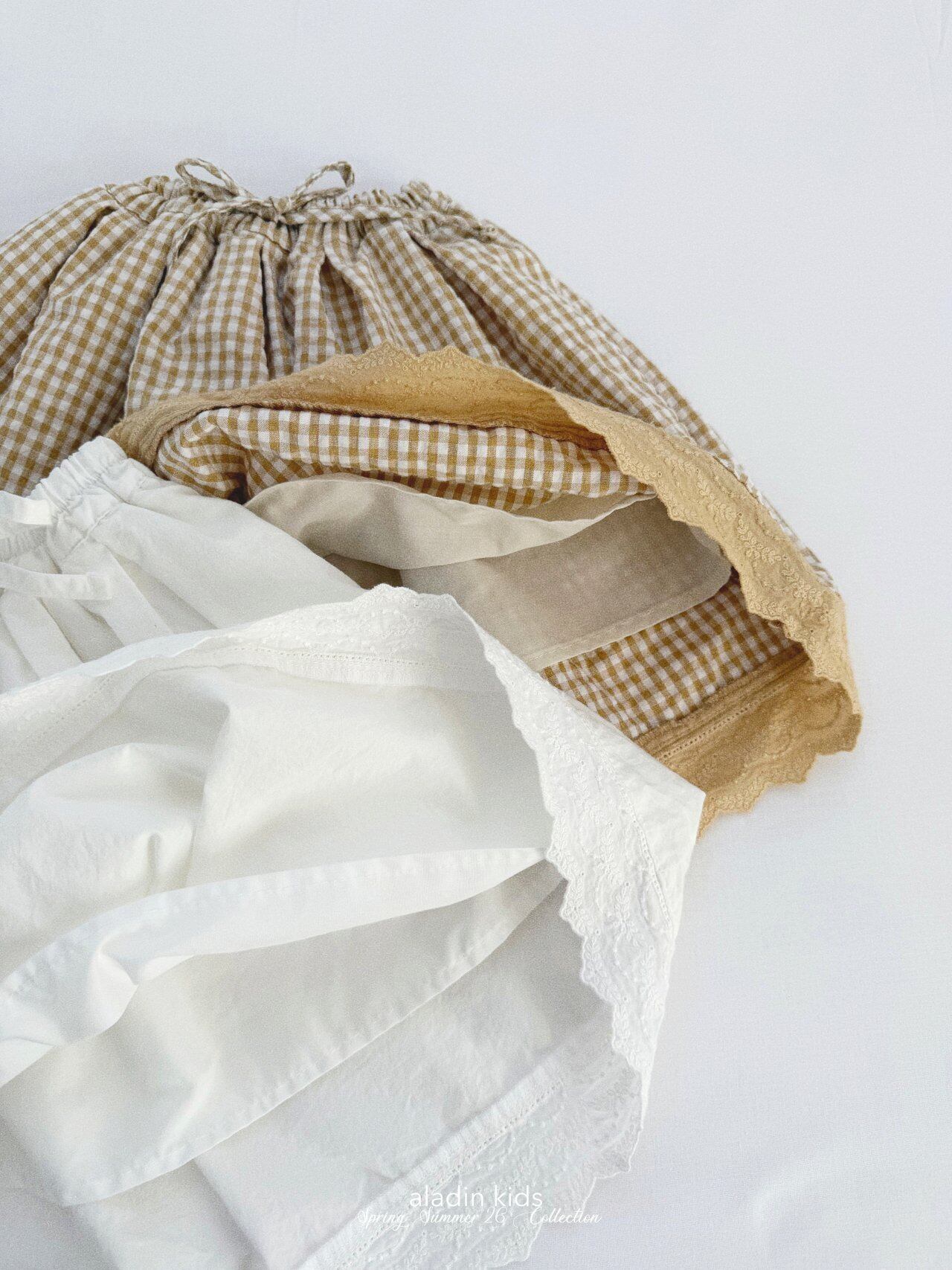 【予約】Smock Pleated Lace Skirt/ aladin kids