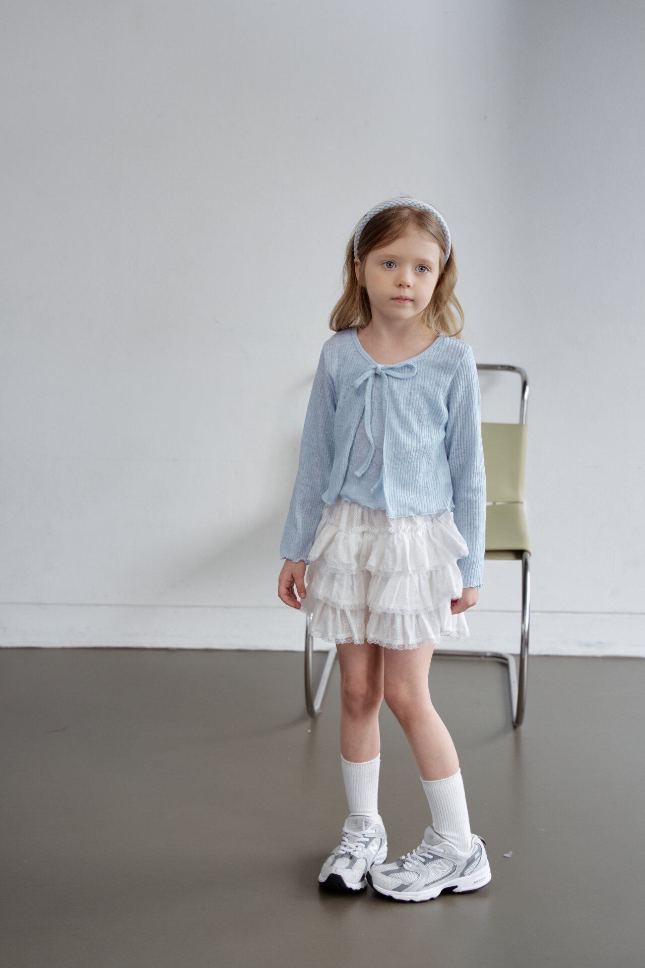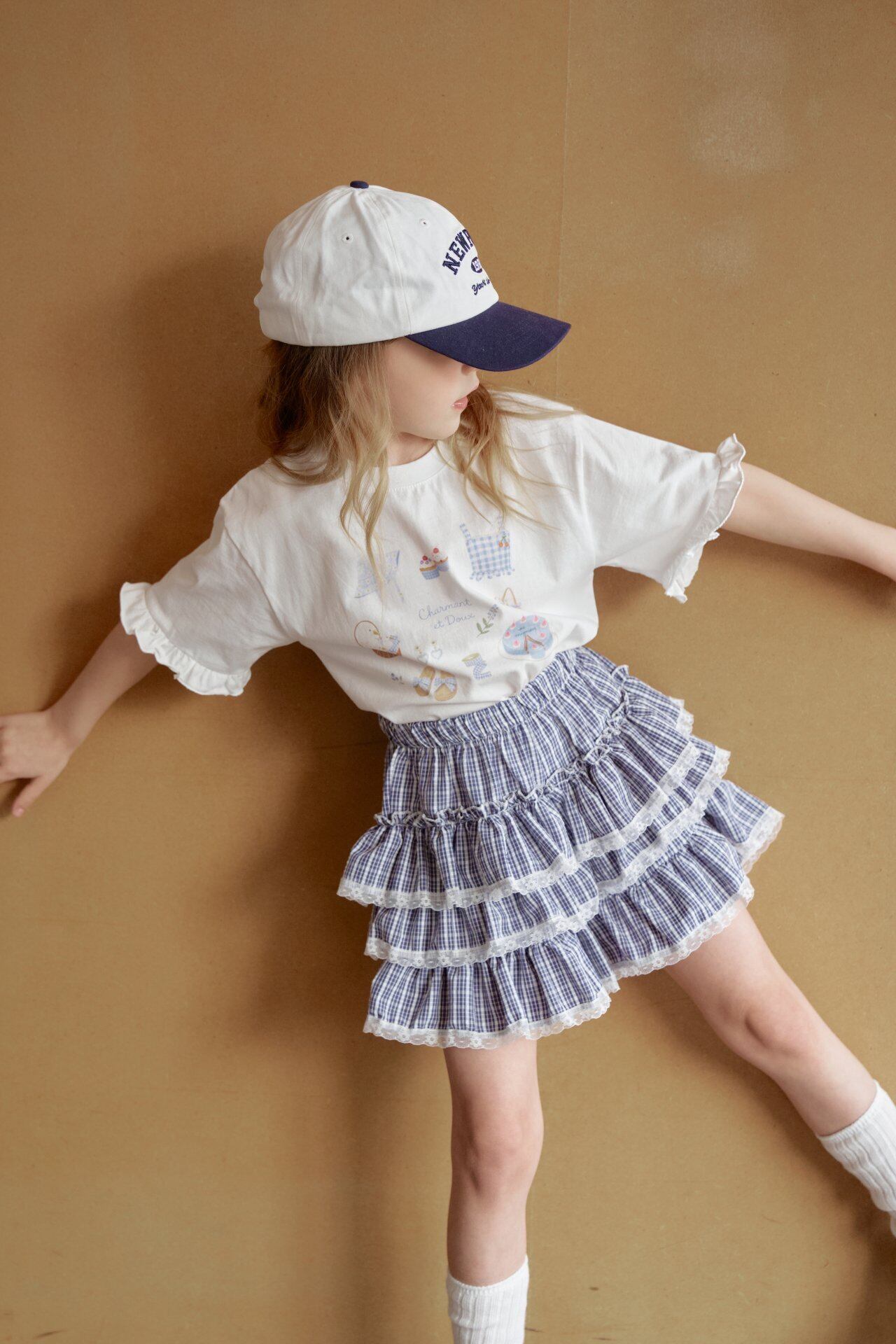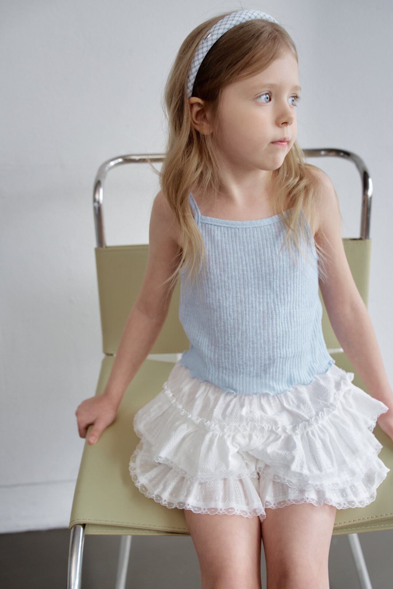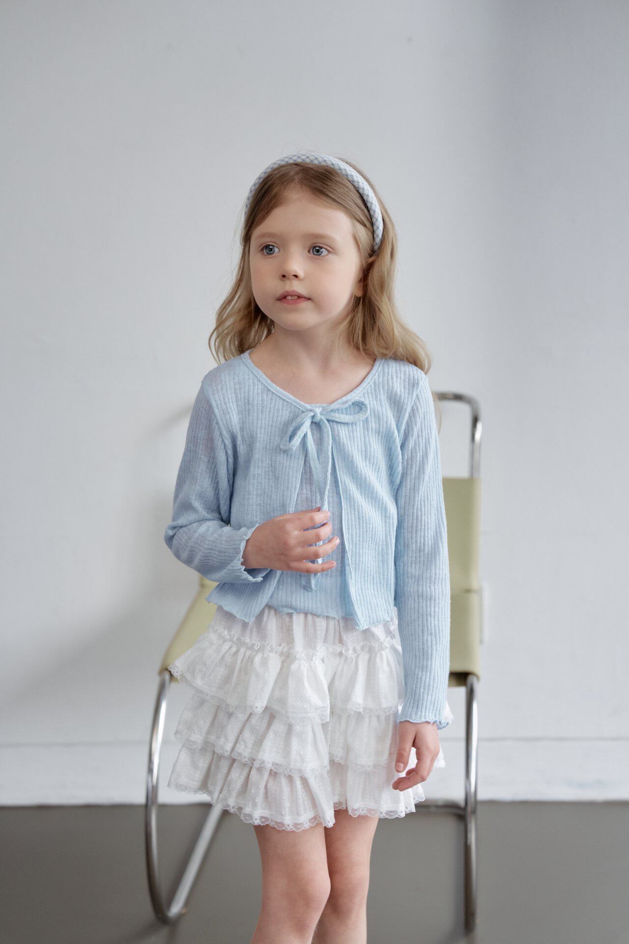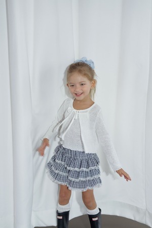 涼しげなブルーのネイビーチェックにレースをあしらったチェック柄と