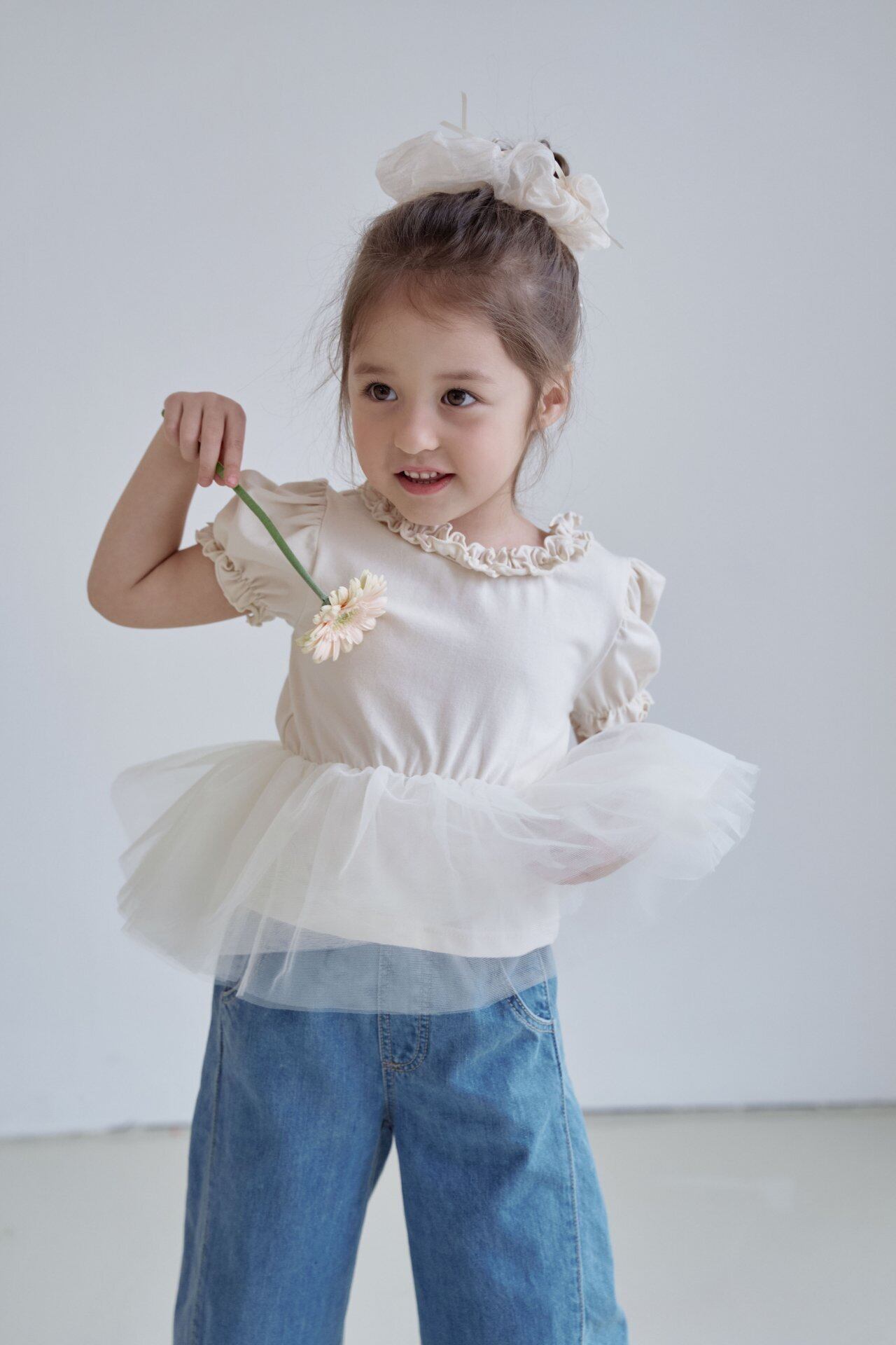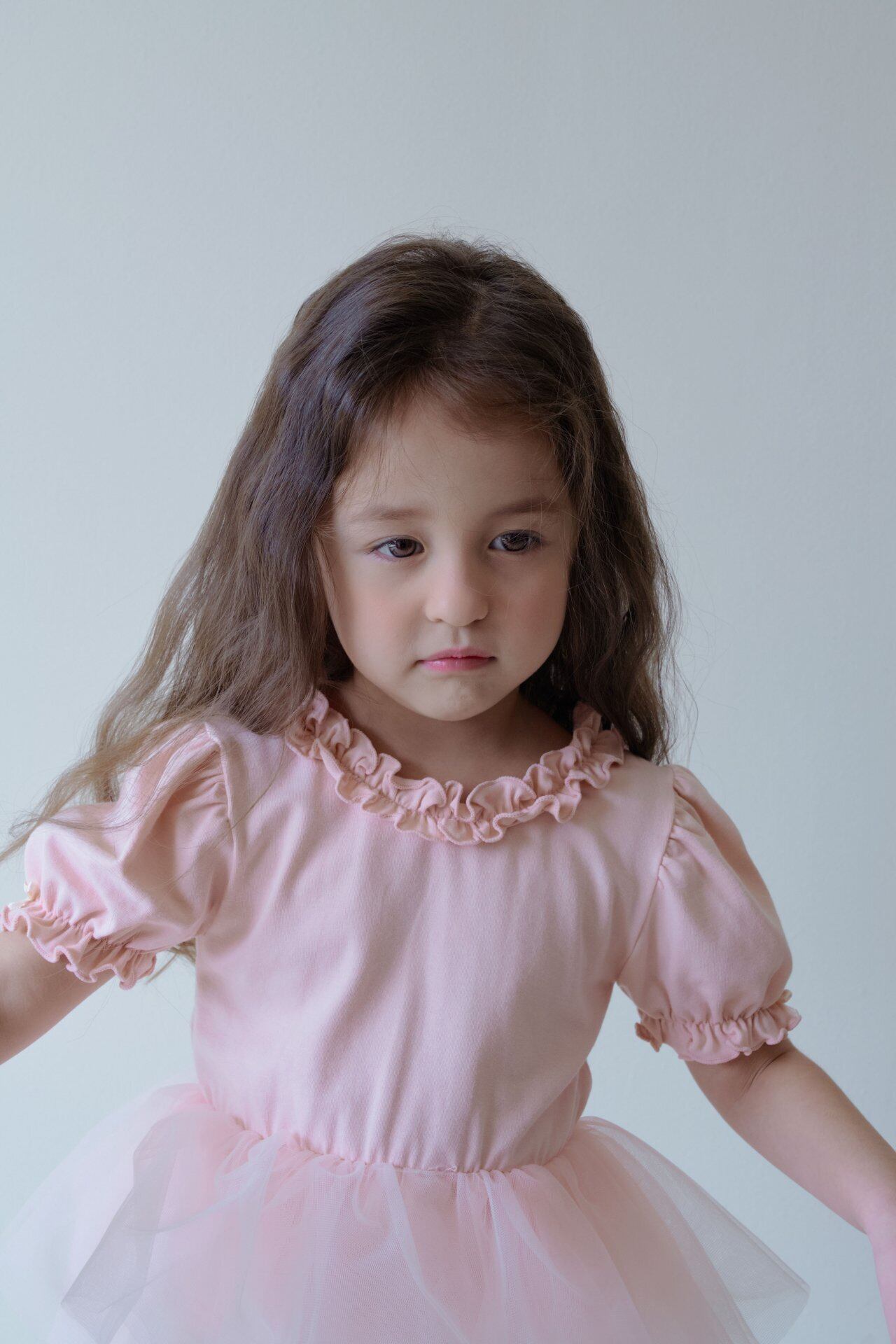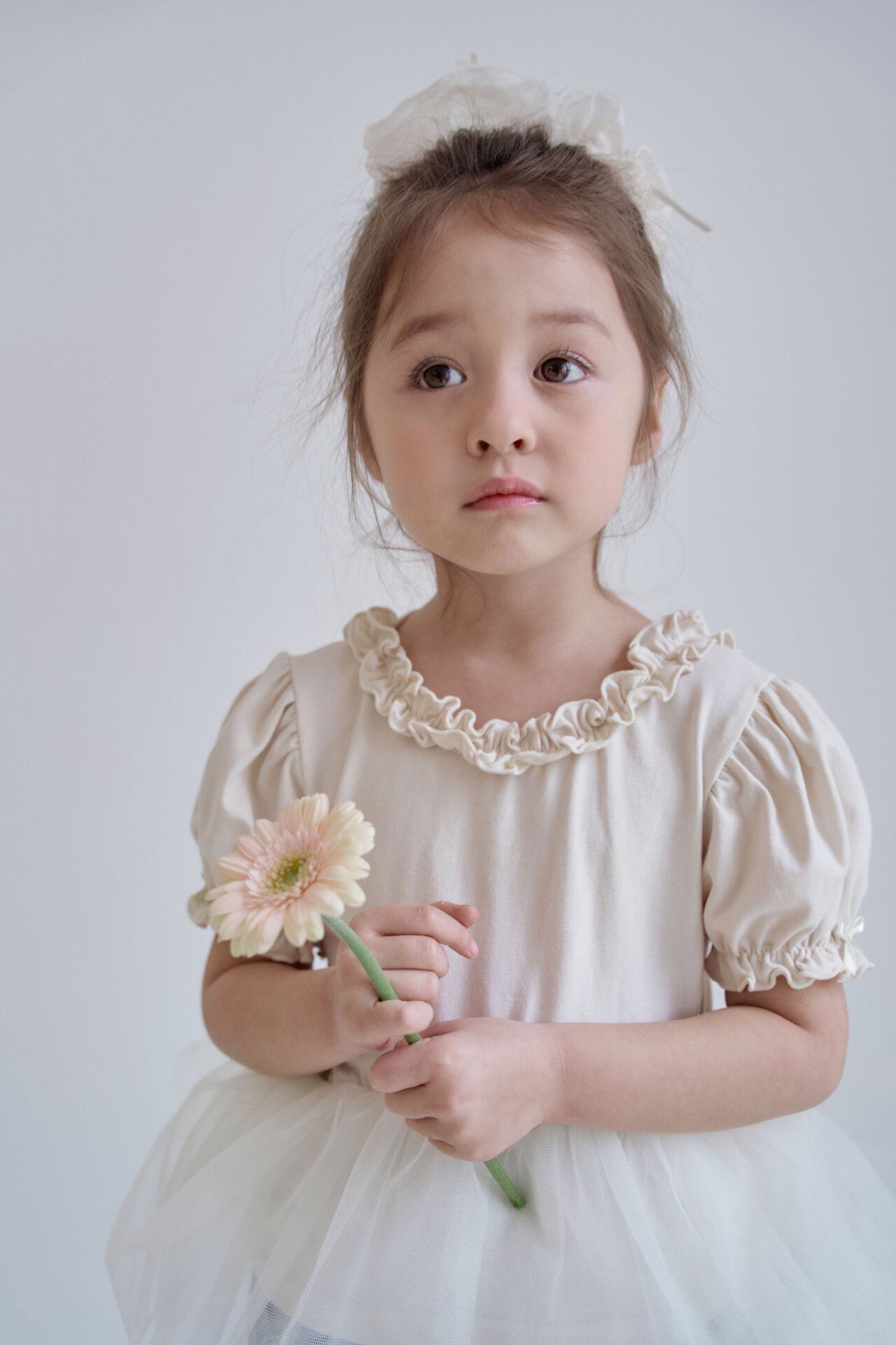 4枚のチュールと首元・袖のフリル、後ろ姿までラブリーなデザイン