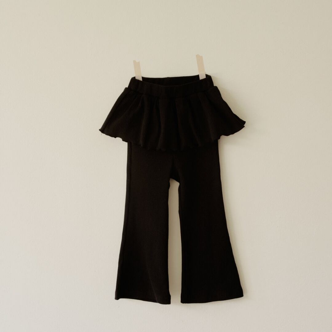 全体ゴムウエストで履きやすく、ミニスカート風フリルがヒップをさりげなくカバー