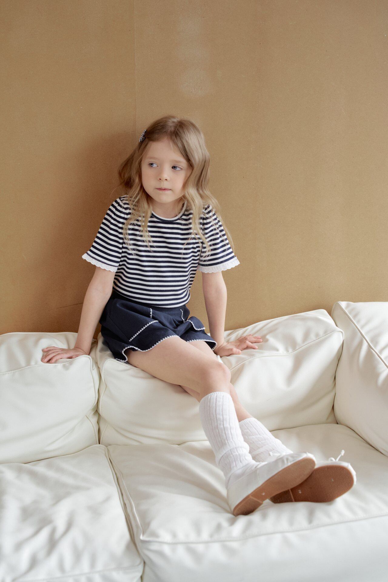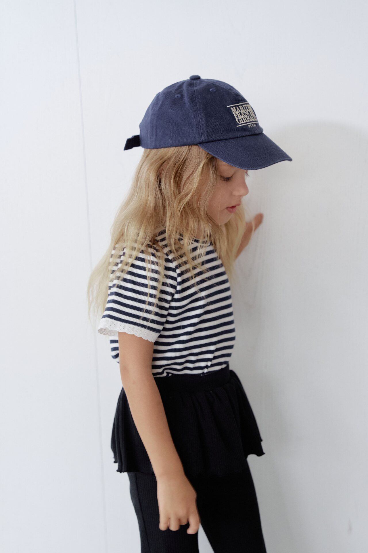 Ivory Flower / Navy Stripe