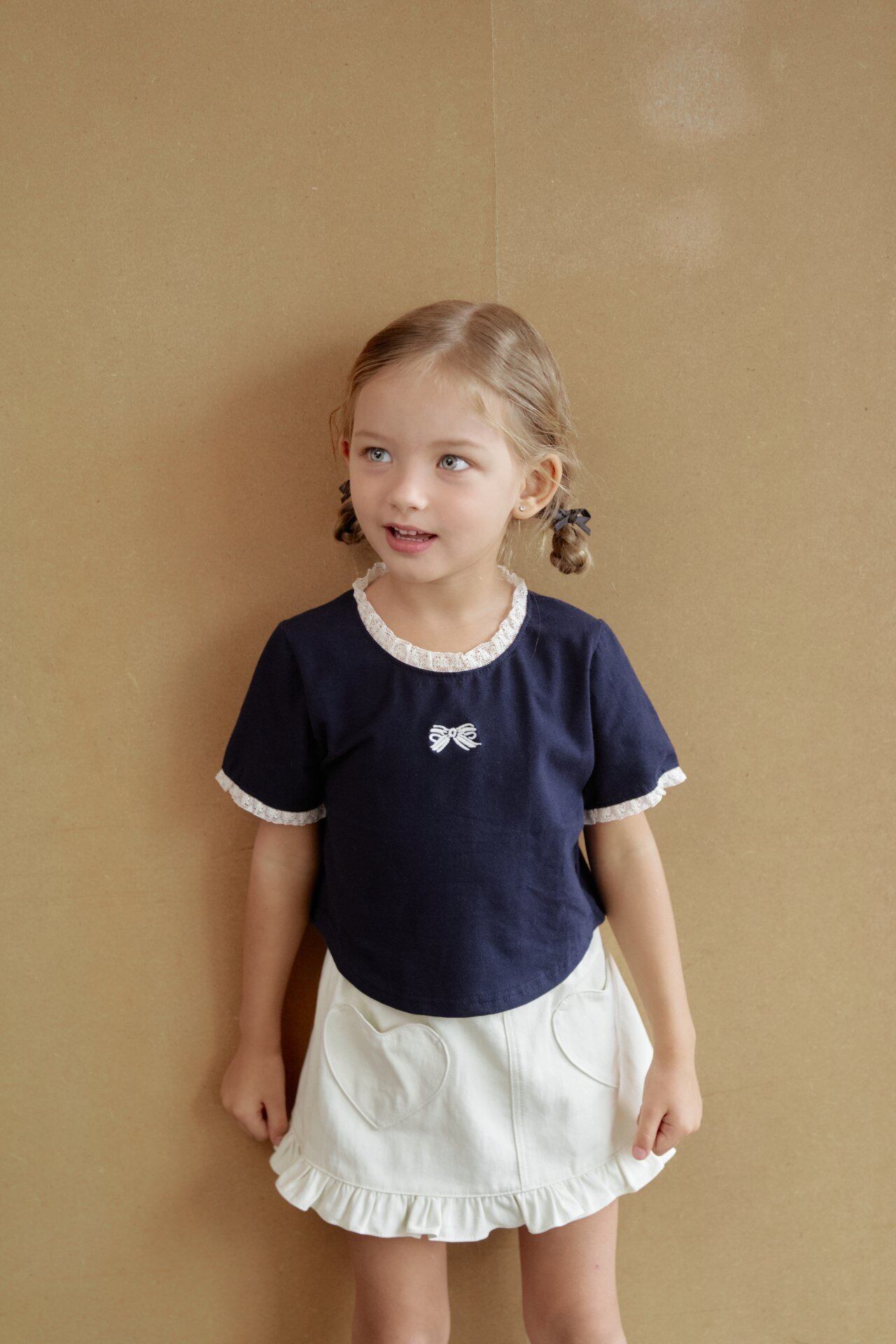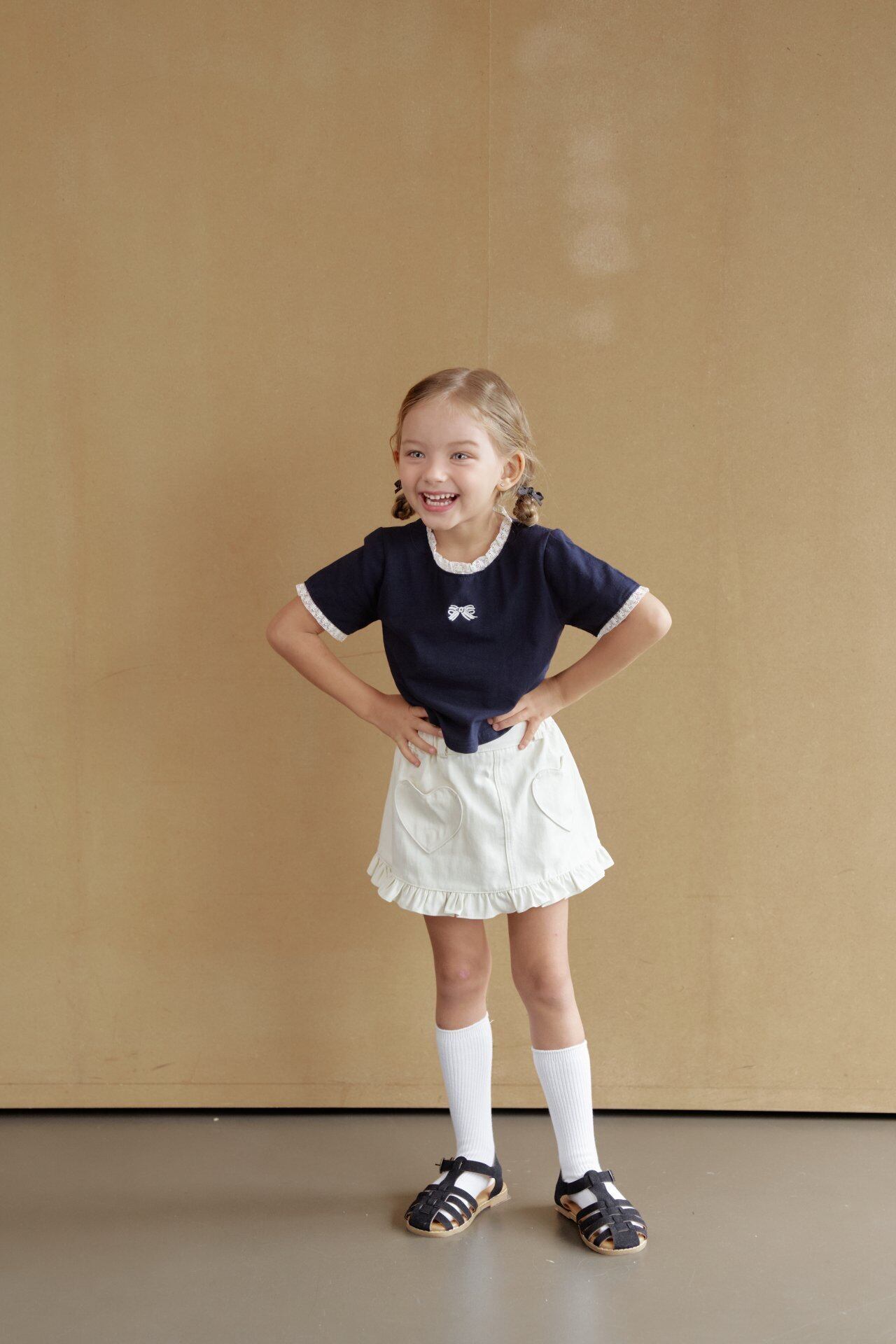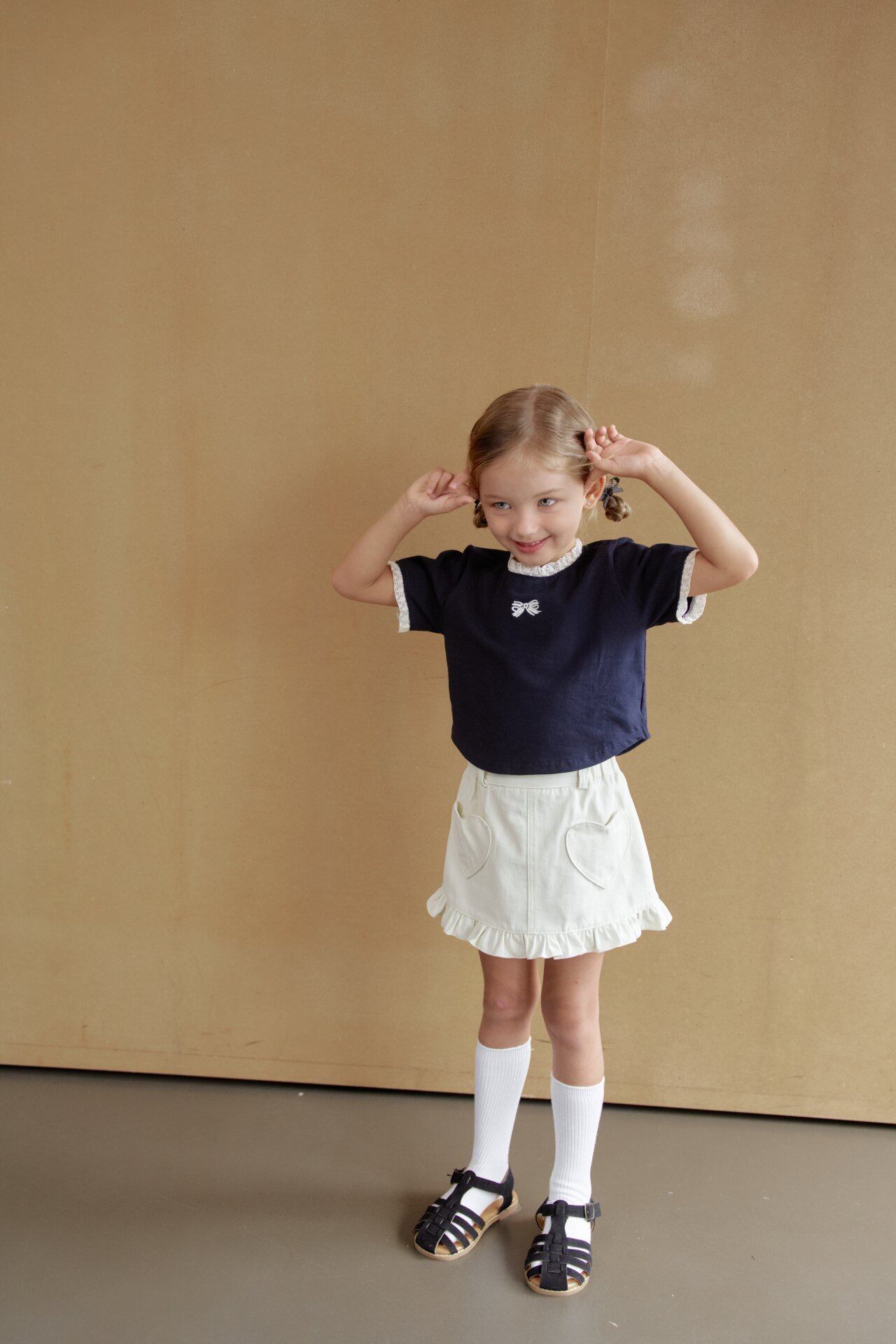 裾フリルとハートポケットのディテールがキュートなデザイン