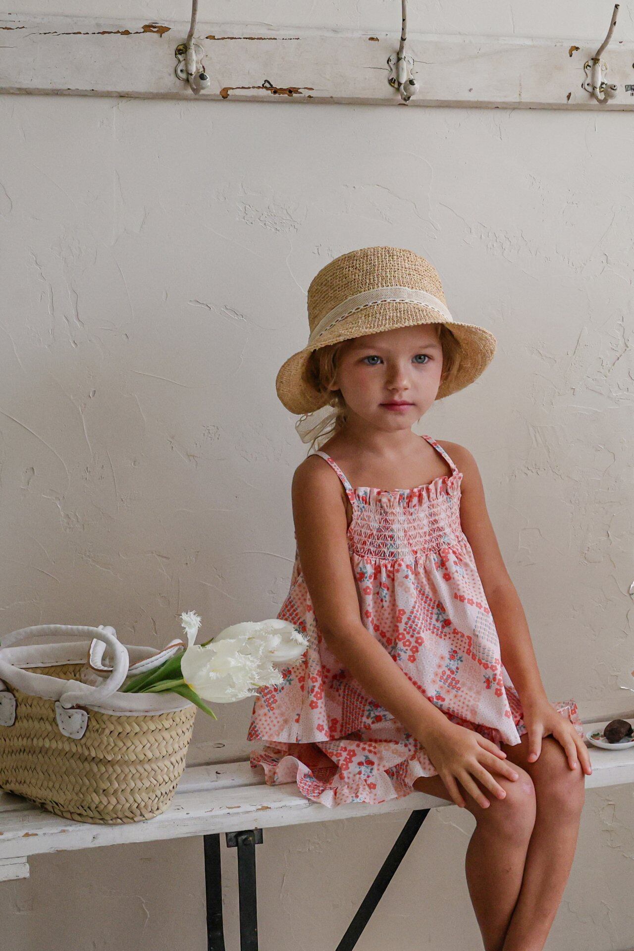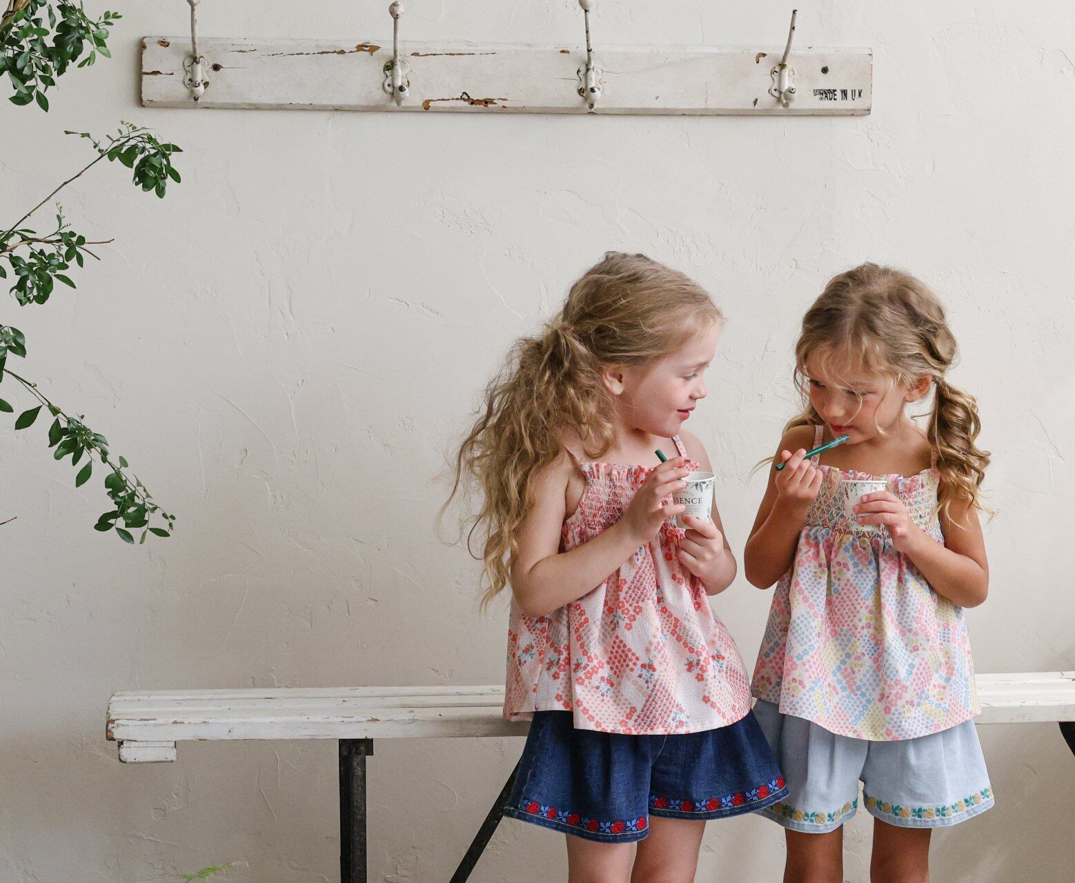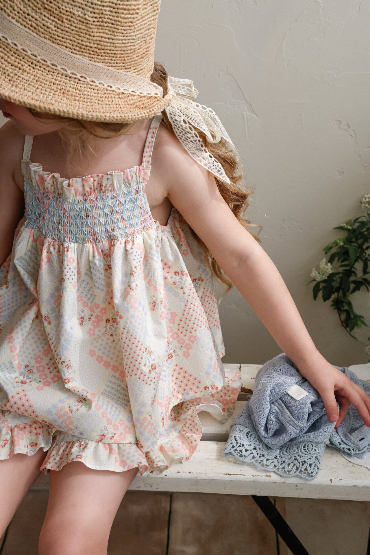 胸元には配色カラーのスモッキングディテールをあしらい感度の高い可愛いポイントに