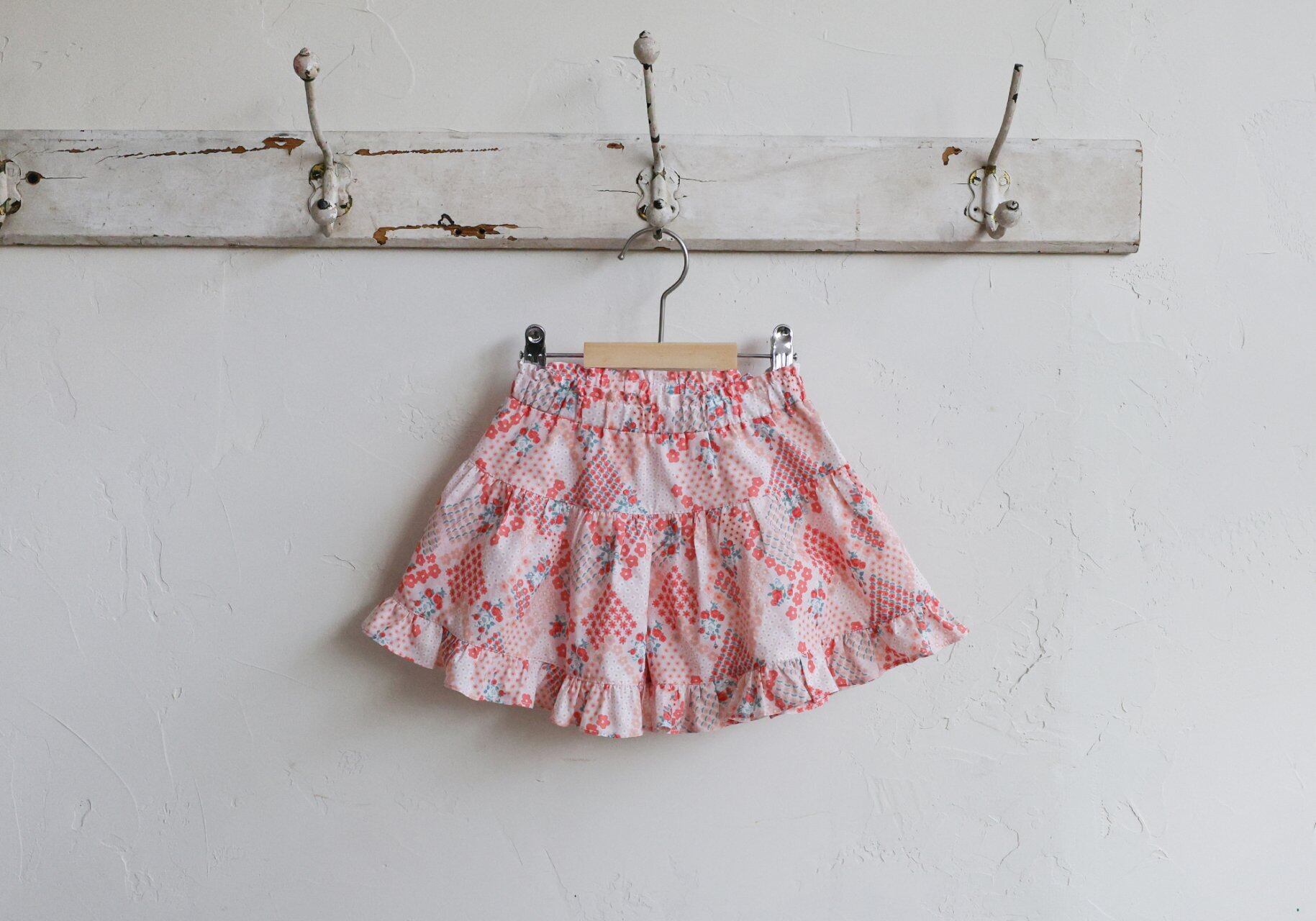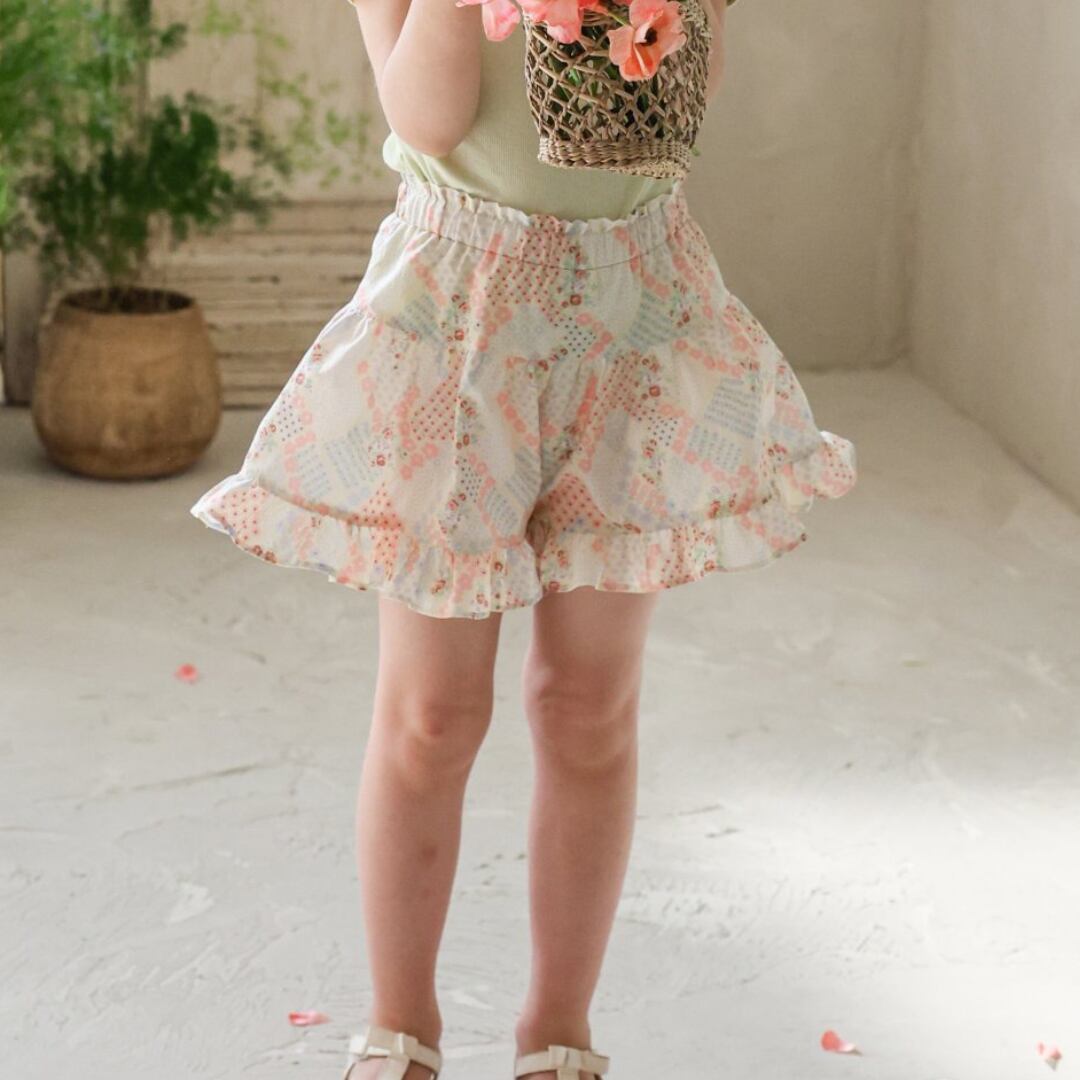 華やかなカラーのフラワーパッチワークパターンがポイントで