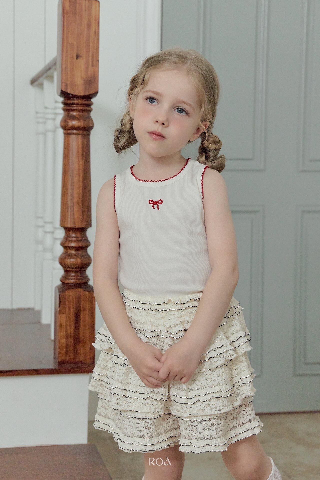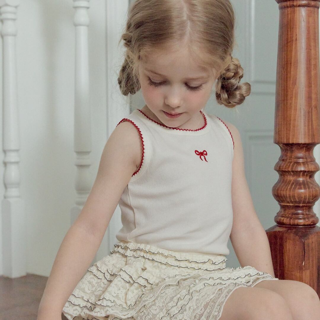 【予約】Ribbon Embroidery Sleeveless T-shirt /Roa