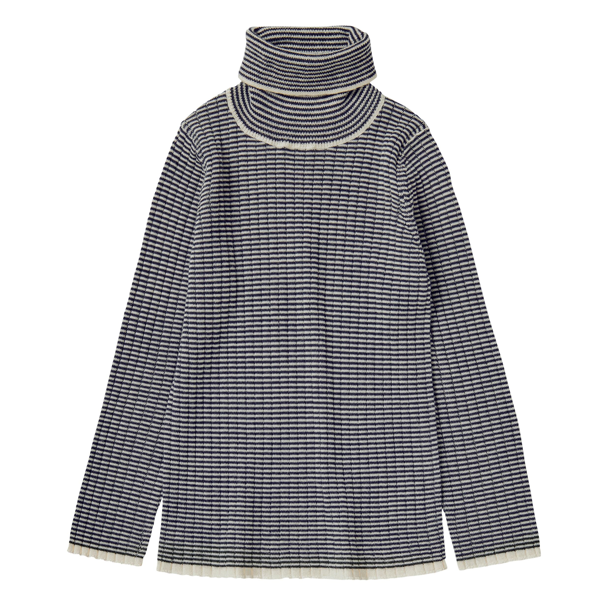 細かいネイビーとホワイトのボーダー柄です