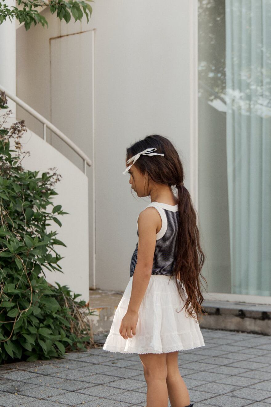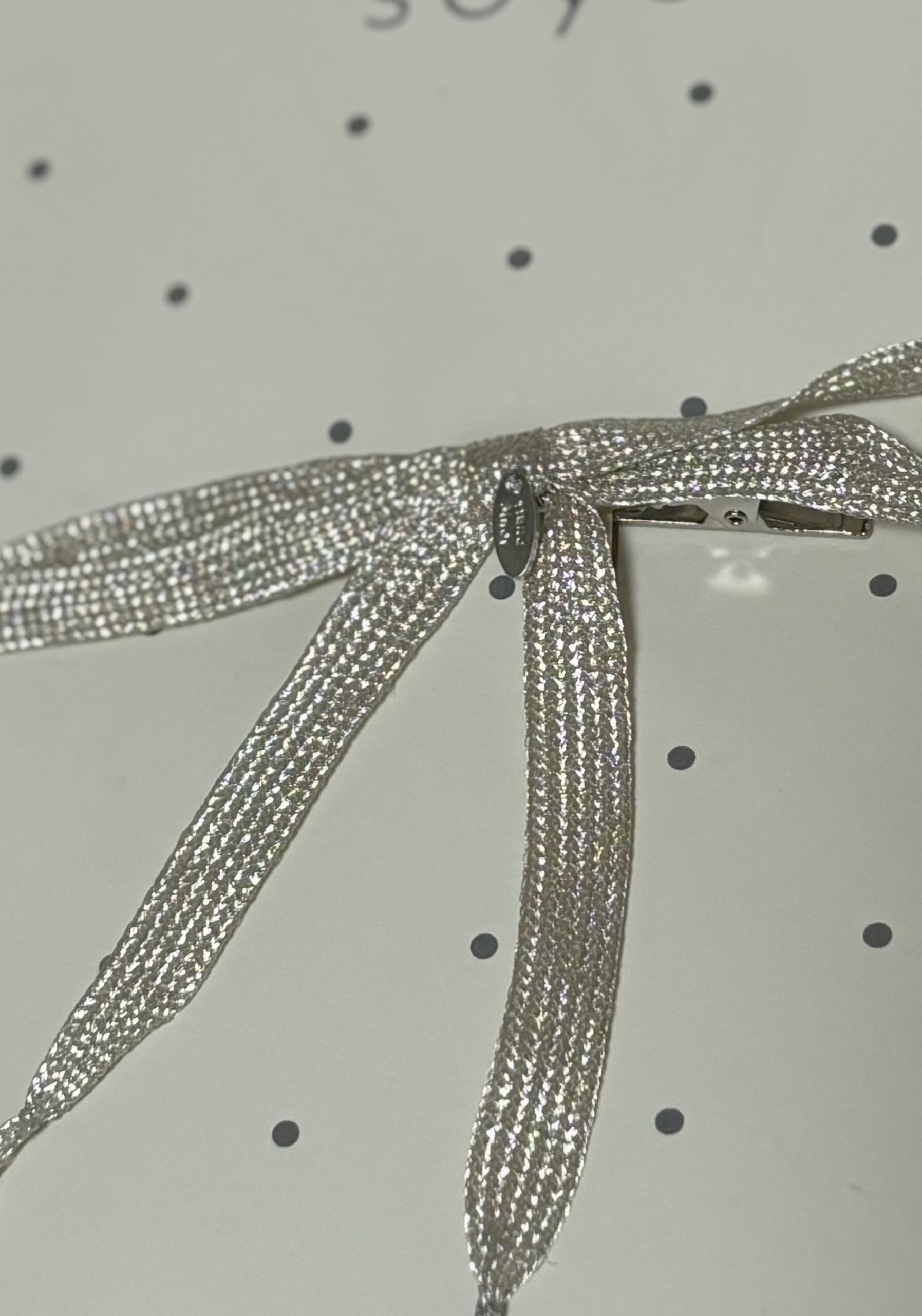 シルバーで存在感があるのに繊細な細身のリボンです